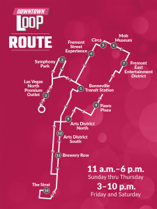 Ayrıca şehirde Vegas Loop isimli taşıma sistemi de vardır (tarife bilgisi çin).Kongre Merkezi’ndeki Vegas Loop, LVCC kampüsündeki kongre ve fuar katılımcılarına hızlı ve rahat ulaşım imkanı sunarak yeni Batı Salonu‘nu mevcut kampüse (Kuzey/Orta/Güney Salonları) bağlar.