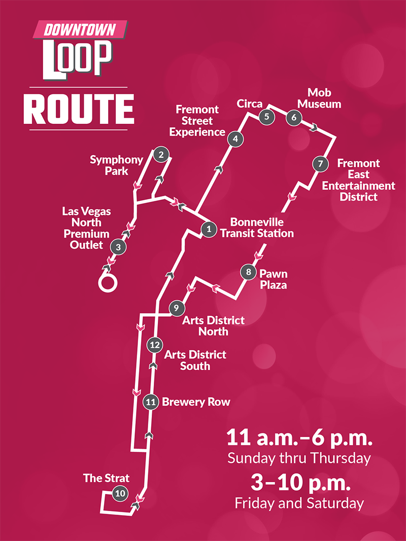 • Las Vegas şehir merkezine ulaştığınızda, Downtown Loop otobüs hizmetinden ücretsiz olarak  yararlanabilirsiniz.