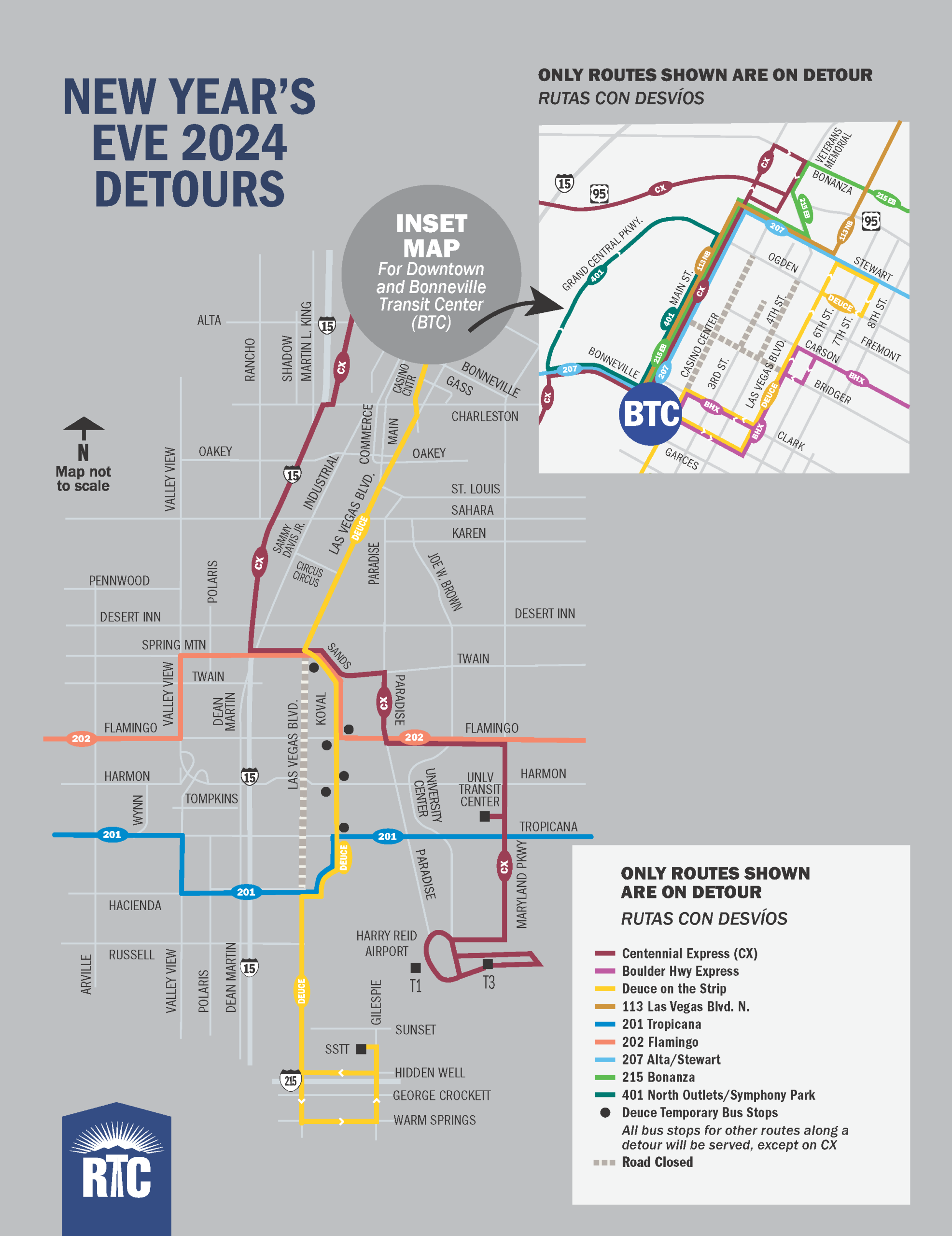 Centennial Express (CX) – Las Vegas şehir merkezindeki Bonneville Transit Merkezi ve Centennial Hills Transit Merkezine gider.