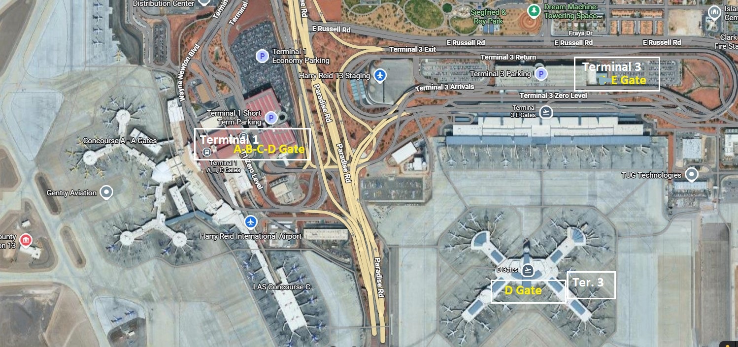 Las Vegas Havalimanı’nda iki ana yolcu terminali bulunmaktadır: Terminal 1 ve Terminal 3.