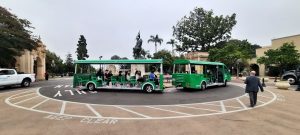 Geniş alana yayılan park’ ta ücretsiz bir servis aracı var, her gün ve her 10-15 dakikada bir park ziyaretçilerini almak ve bırakmak için merkezde duracaktır. Yaz çalışma saatleri 1 Haziran – 31 Ekim tarihleri arasında her gün 09:00 – 20:00 arasıdır. Sonbahar/kış çalışma saatleri 1 Kasım – 31 Mayıs tarihleri arasında her gün 09:00 – 18:00 arasıdır. Merkez istasyondan (meydanda atlı heykel var) son alım, her gün seferlerinin bitiminden 15 dakika önce oluyor. Servis, Park’ın içinden geçerek en popüler noktalarının çoğunda duruyor: Plaza de Panama (Prado’nun önü), Spreckels Organ Pavyonu ve Pan American Plaza (Palisades Lot).