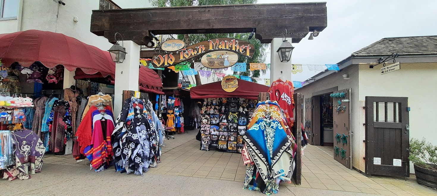 Old Town Eyalet Tarihi Parkı’nda alışveriş, 1800’lerin tarihini yansıtır ve San Diego’nun renkli geçmişinin özünü yansıtır. Old Town’da, taze ev yapımı şekerlemeler için Cousin’s Candy, kendi mumlarınızı yapabileceğiniz Toby’s Candle Shop ve şapkacılıkta uzmanlaşmış Johnson House gibi çeşitli mağazalar bulunmaktadır. Açık hava avlusu olan Old Town Market Place, Meksika kültürüne özgü el yapımı biblolar, giysiler ve aksesuarlar satan çeşitli arabalara ve dükkanlara ev sahipliği yapmaktadır.