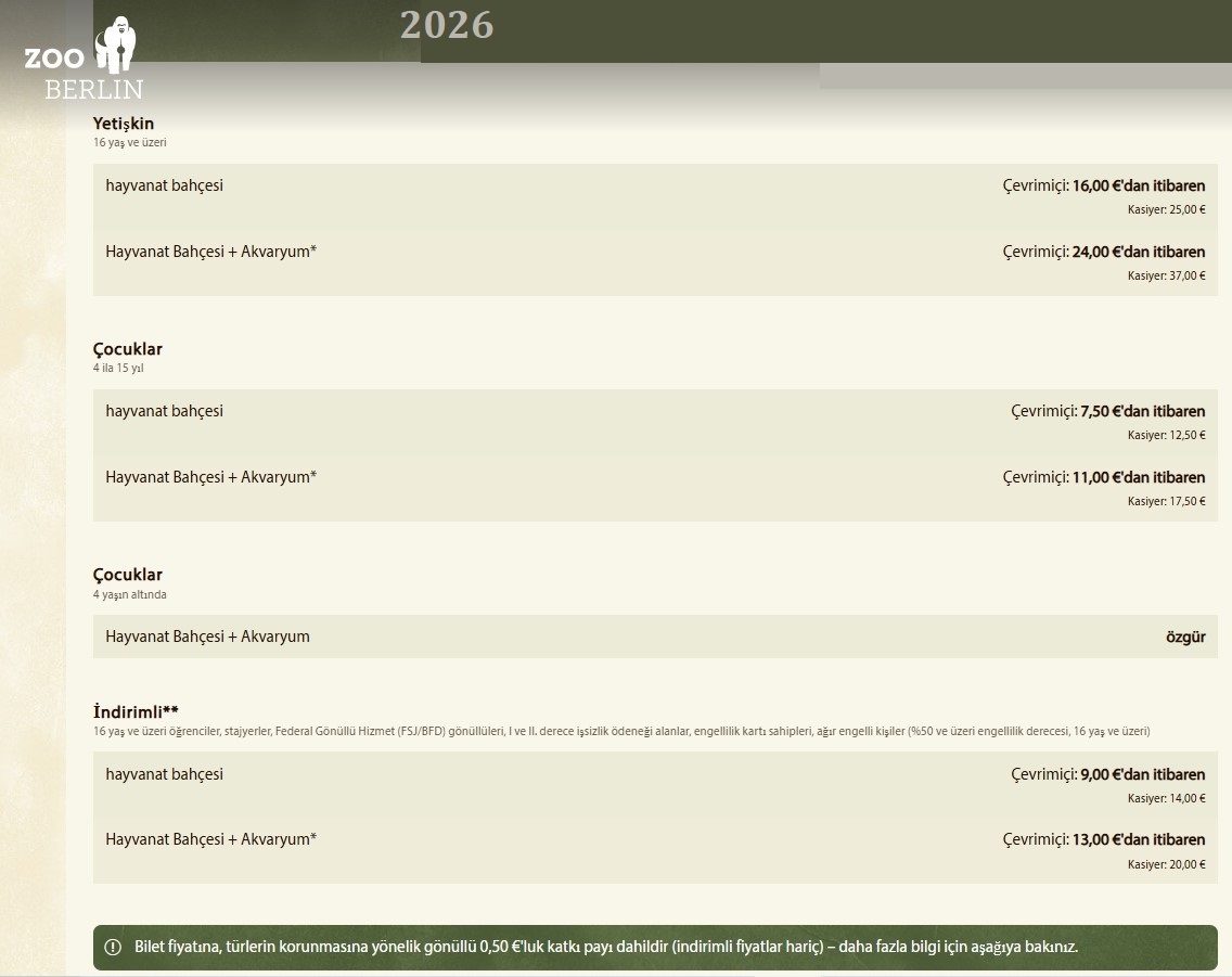 Not : Hayvanat bahçesi çok geniş bir alandır. Özellikle çocuklu aileler en az 3-4 saat buraya zaman ayırmalıdır. Kısacası buranın gezisini küçük bir aralığa sıkıştırmayın!.. Ücret bilgisi (bakın).