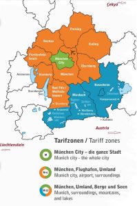 Deutschlandticket / Almanya biletinin devreye girmesi ile birlikte Münih’ te de Toplu taşımada bazı tarifelerde düzenlemeye gidilmiştir! En önemlisi 2023 sonlarına kadar 7 bölge olan Münih toplu taşıma bölge (zone) haritası Merkez Münih (M) dahil olmak üzere 12 bölge’ ye ayrılmıştır (Zone).