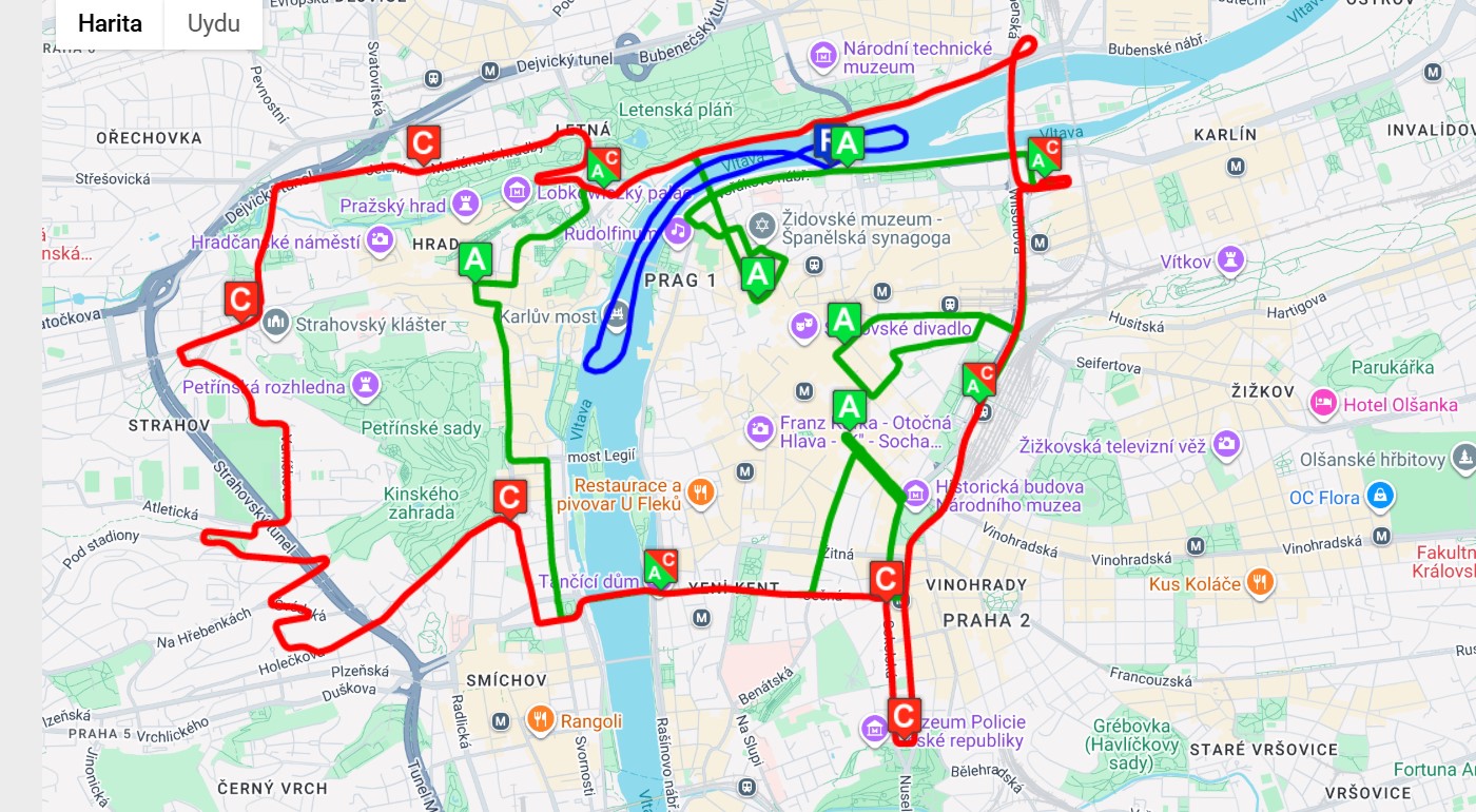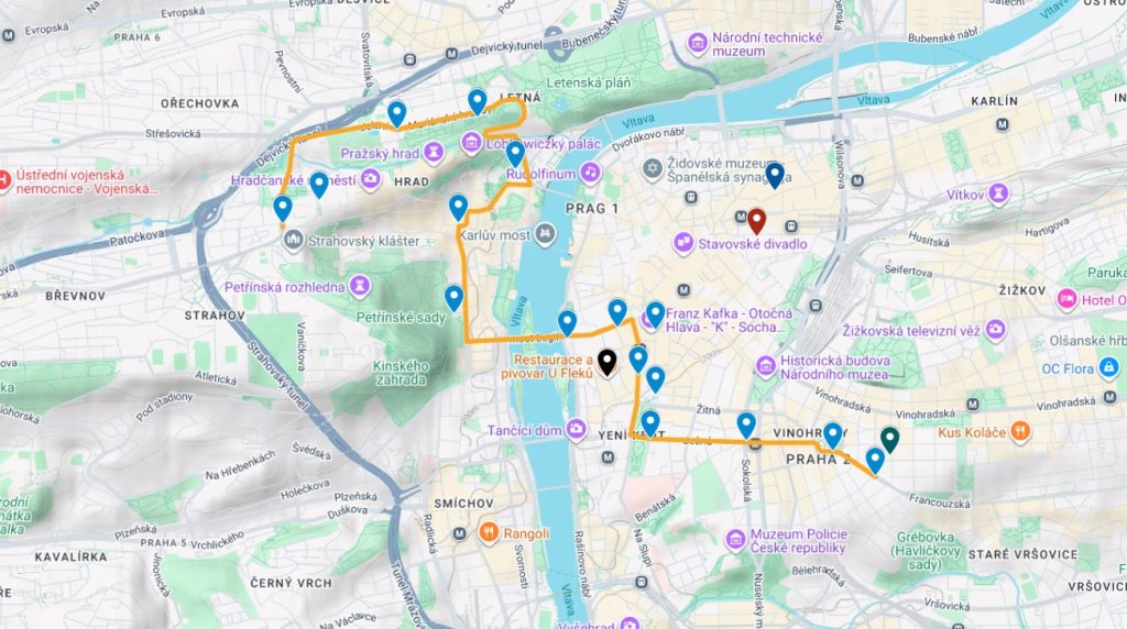 Bu yol rotası Prag’ın en önemli görüntülerini kapsamaktadır. Ünlü tarihi Prag bölgelerinde gezmekteyiz – Eski Şehir, Yahudi Mahallesi, Küçük Şehir ve Prag Kalesi.