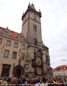 Malé náměstí üzerinden eski şehir meydanına girdiğimizde, hemen sol yanımızda bulunan tarihi saat kulesindeyiz..