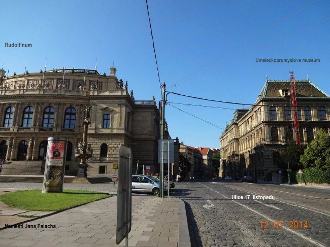 Yeniden Paris caddesindeyiz..Paris caddesini Vlatava yakınlarında (İntercontinantel Hotel karşı alanında) kesen caddeye girelim (17. Listopadu )..Güney yönüyle aşağıya inelim (300 m kadar sonra). Az sonra karşımıza park alanlı geniş bir meydan çıkacaktır (Manesuv most – köprüsü bu alanda belirir)..