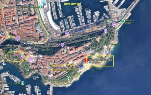 Bu otobüsler (eğer Nice’ ten geliyor iseniz) sizi tepede “Monaco Tourism Office” önünde indirecektir (konum). Eğer Nice dışından farklı bir noktadan geliyorsanız ya tepeye yürüyecek yada Monaco toplu taşımasından yararlanacaksınız.