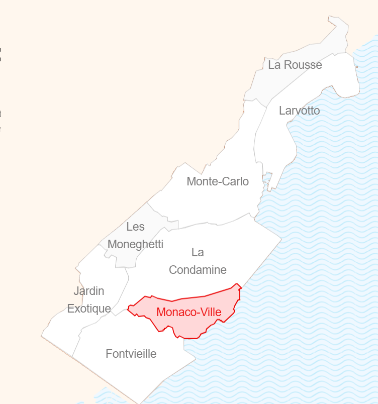 Topografik olarak Monaco Bölgeleri (mahalleleri)