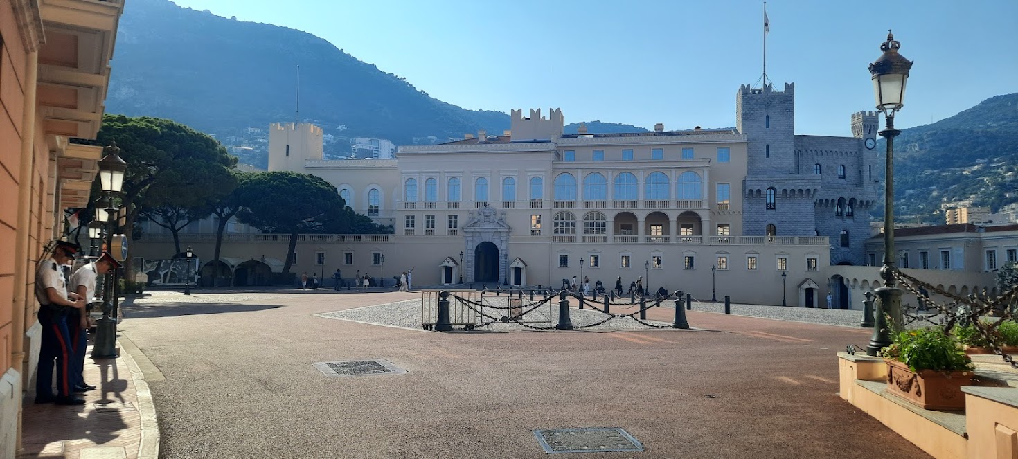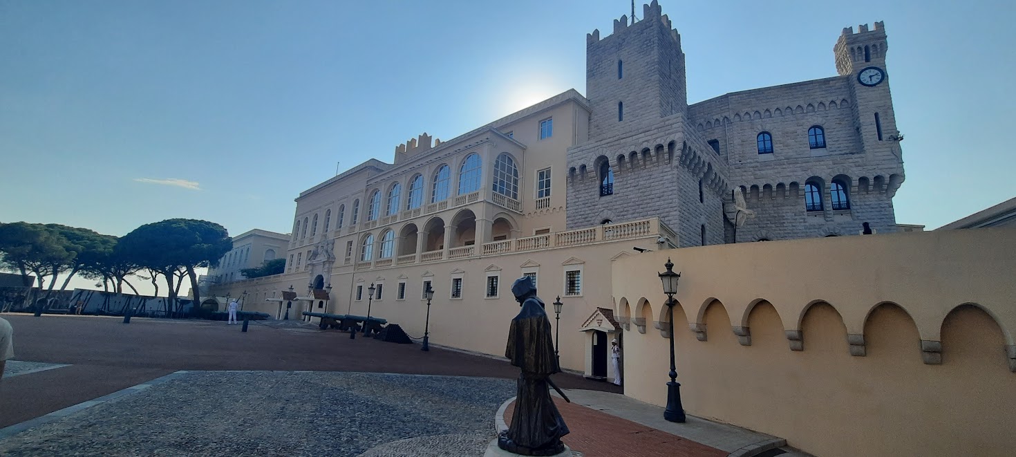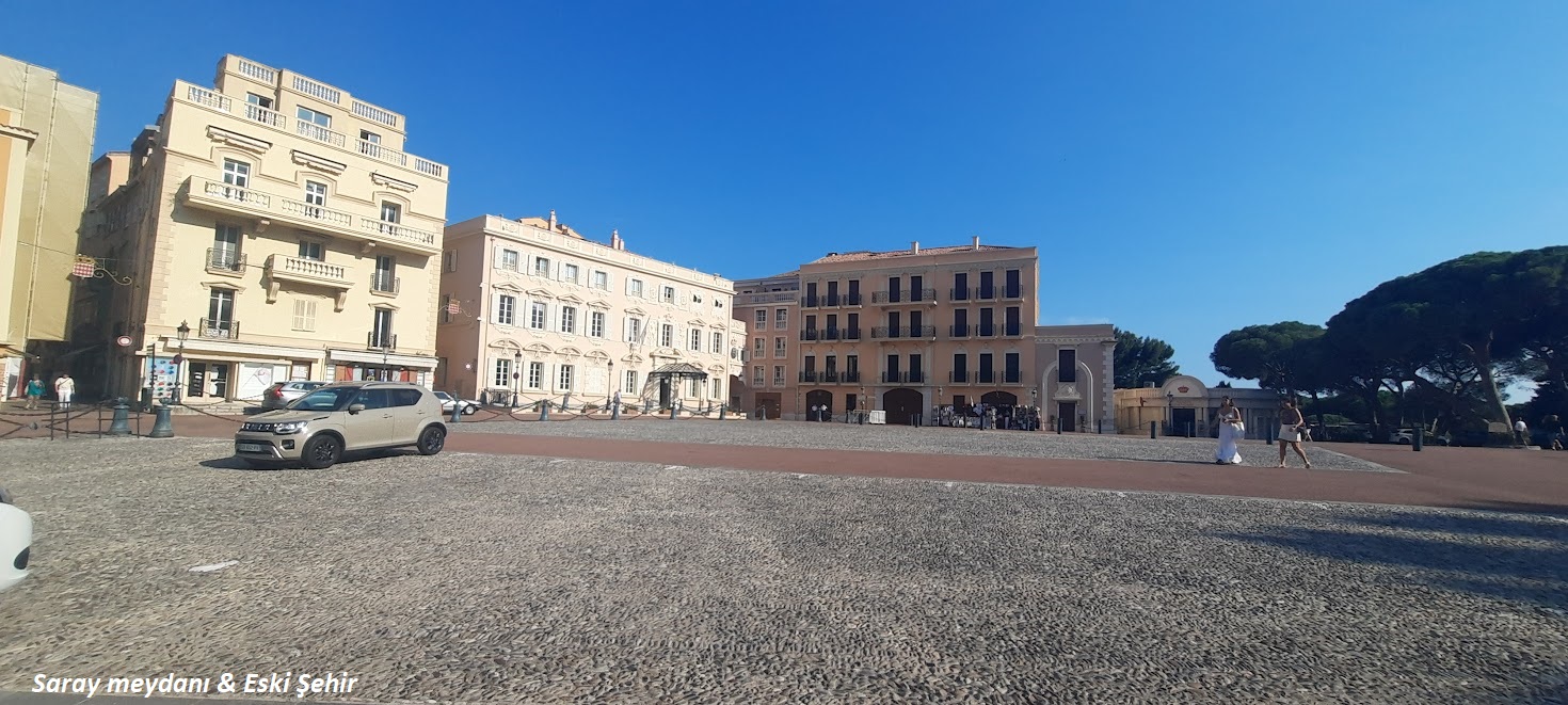 Ve sırada ülkenin biraz daha yüksek rakımlı konumunda bulunan eski şehrinde  Monaco Kraliyet Sarayı var (Place du Palais) (konum) // resmi web sitesi.1web. 2 (genel bilgi-ziyaret).