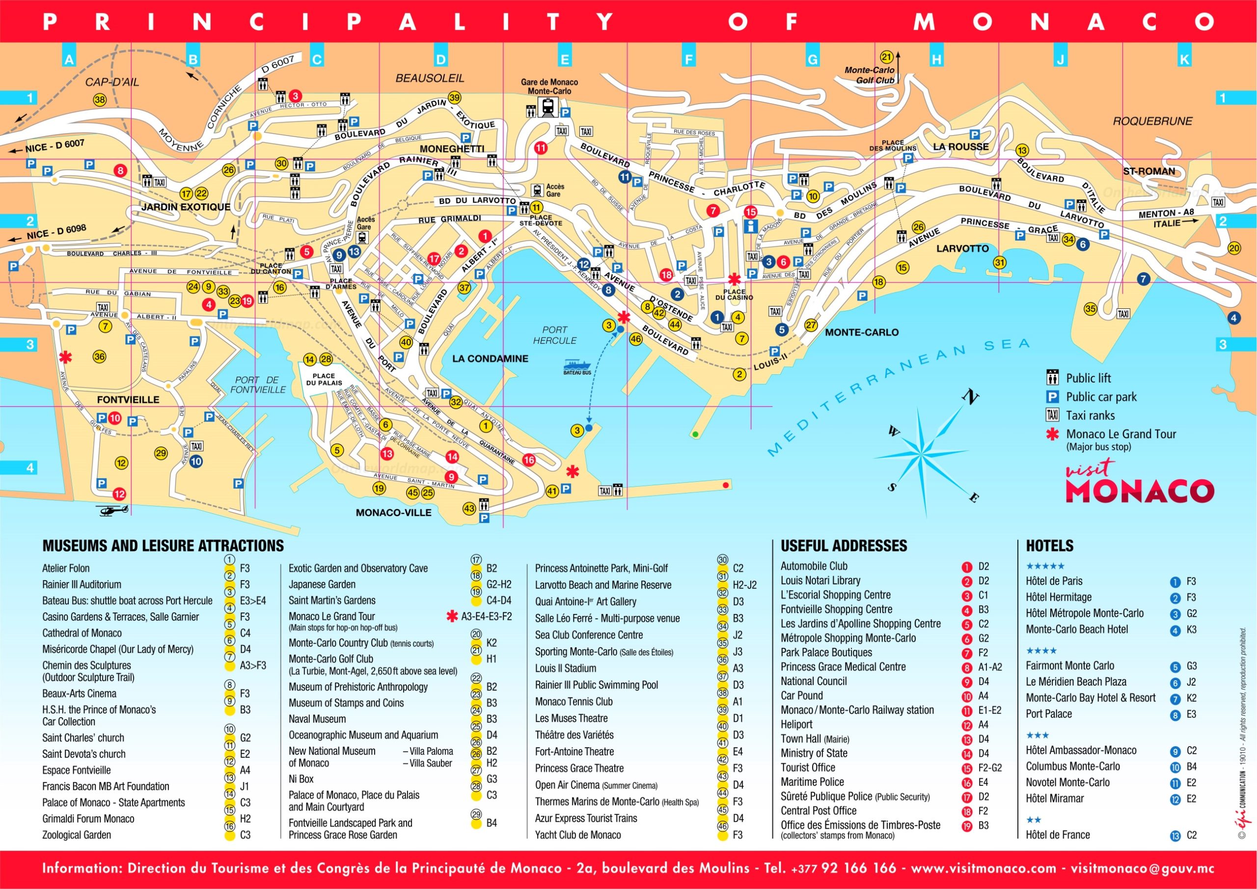 Bu otobüsler (eğer Nice’ ten geliyor iseniz) sizi tepede “Monaco Tourism Office” önünde indirecektir (konum). Eğer Nice dışından farklı bir noktadan geliyorsanız ya tepeye yürüyecek yada Monaco toplu taşımasından yararlanacaksınız.