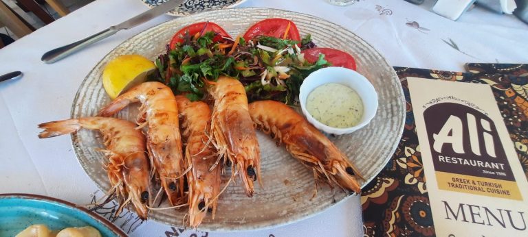 Ali Restoran ; ( TripadVisor’ de adanın 100 restoranı arasında son yıllarda ilk 15′ e giren işletmesi. Aile olarak (adanın eski yerlilerinden Ali bey ve oğlu Ahmet beyin yakın ilgileri ile) aile işletmesi olarak, sahile yakın, sessiz güzel – havadar bahçeli mekanda ve yemekleri de son derece lezzetli-doyurucu olması yanında hesaplı olarak hizmetini devam ettiriyor (Artemisias 23, Kos 853 00, Yunanistan) (Maps) //  (3 kişi alkol hariç, su & meşrubat – Bolca Kalamar tavası & 5 adet jumbo karides mangal’ ı – Karides güvec’ i – bol hacimli 2 yöresel meze tabağı  + meyve ikramı ile 2024 yazında toplam 65 €’ ya güzelce lezzeti ile doyduk!) (2024 – menüsünde ;  balık veya ahtapot yada Biftek / 16 €, kalamar 14 €, J. karides mangal / 16  €, karides güveç / 12 €, kebaplar ; 11-15 €, salatalar 7-8 € (menü’ yü buradan inceleyin) (Türkçe menü ve iletişim mevcut!)