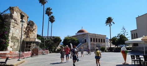 Cami’nin çapraz karşı alanında Kos Arkeoloji müzesi görülecek yerlerdendir (alltaki resim, soldaki yapı).